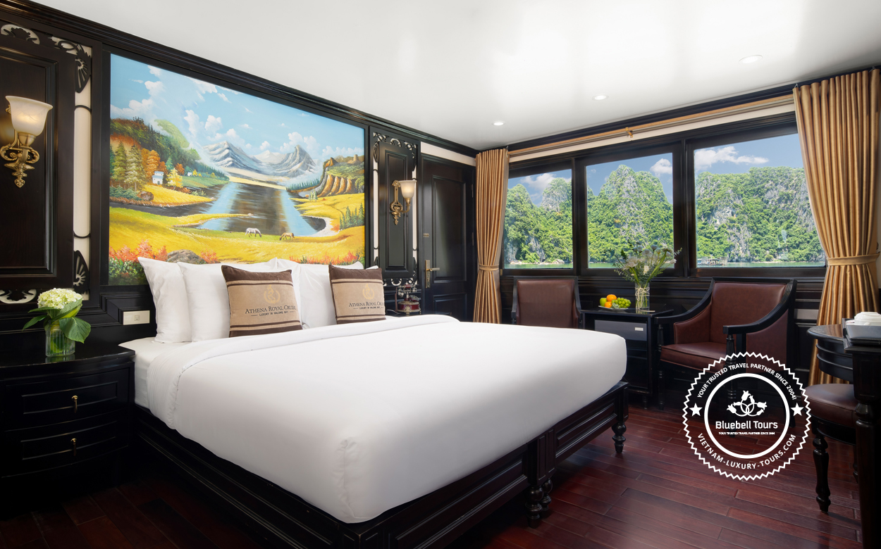 Overnight stays in deluxe cabins on cruises in Ha Long Bay offer a truly refined and comfortable experience at sea. Guests can choose from a wide range of cabin types, including double rooms, twin cabins, family cabins, connecting rooms, and elegant presidential suites, all designed with luxury and privacy in mind. Each cabin features a private balcony, allowing guests to enjoy uninterrupted panoramic views of the bay’s limestone scenery. Stylish interiors and premium amenities ensuring restful nights surrounded by breathtaking natural beauty.