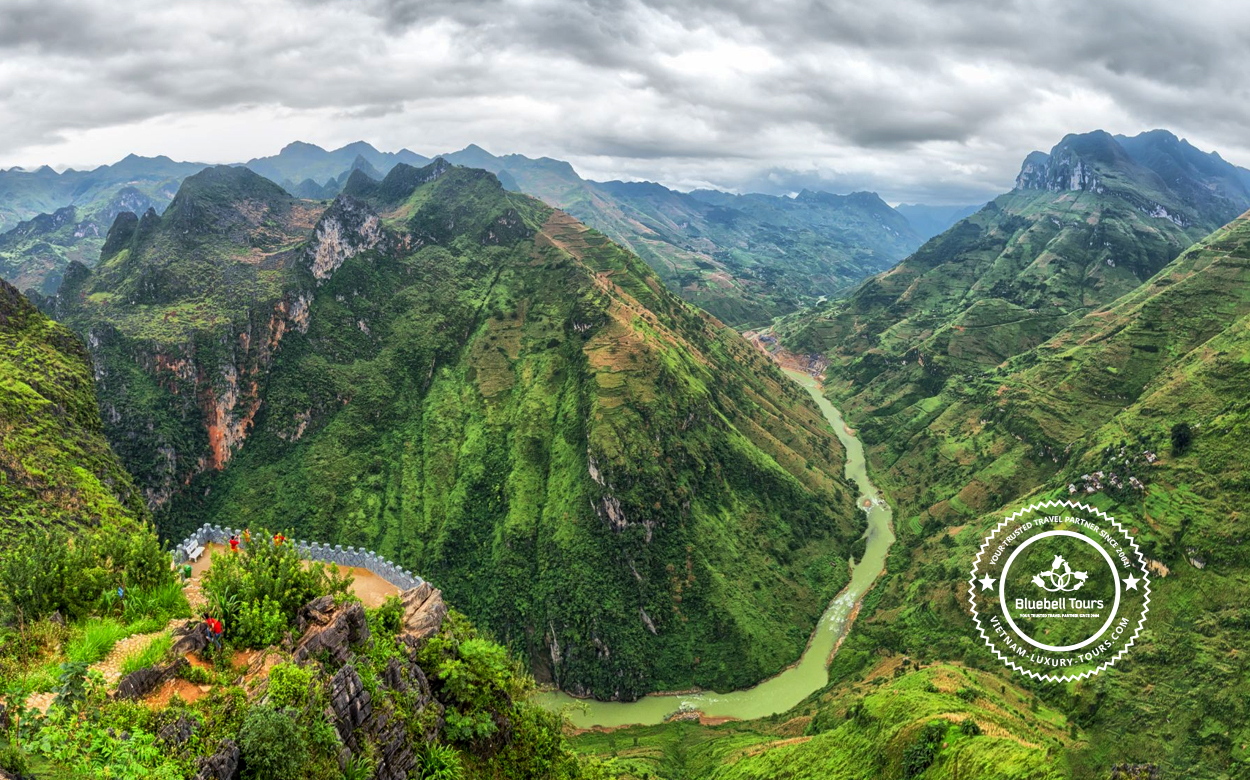 The adventure continues in Ha Giang with a journey through the spectacular Dong Van Karst Plateau, one of the most dramatic landscapes featured in these Vietnam tours. Travelers will visit the iconic Lung Cu Flag Tower, conquer the legendary Ma Pi Leng Pass, and enjoy a peaceful boat trip along the emerald waters of the Nho Que River. As part of this immersive itinerary, guests will explore ethnic minority villages, connect with local communities, and gain insight into traditional lifestyles shaped by the mountains. Designed by experts, these Vietnam tours turn Ha Giang into a highlight of cultural discovery and natural wonder in northern Vietnam.
